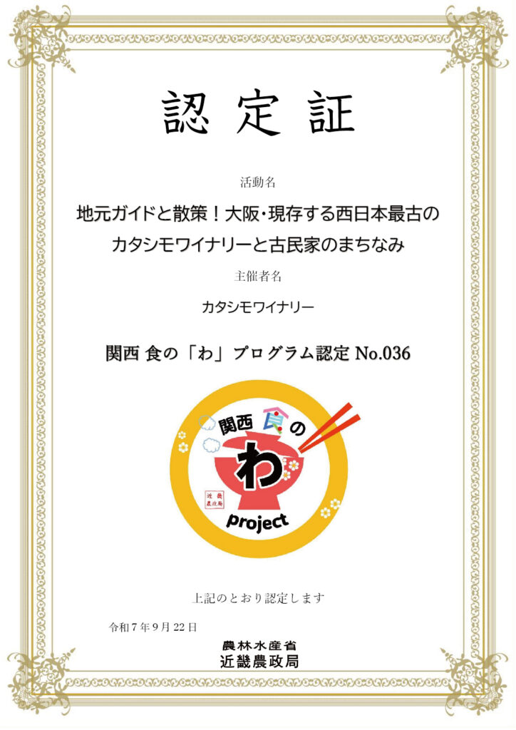 地域の皆さん、農家の皆さん、お客様たち、酒屋さんたち、飲食店さんたち、美容師さんたち・・皆で頑張る『100年以上続くぶどう畑をワインの力で次の100年につなげる』活動が「大阪産(もん)五つの星大賞」を受賞