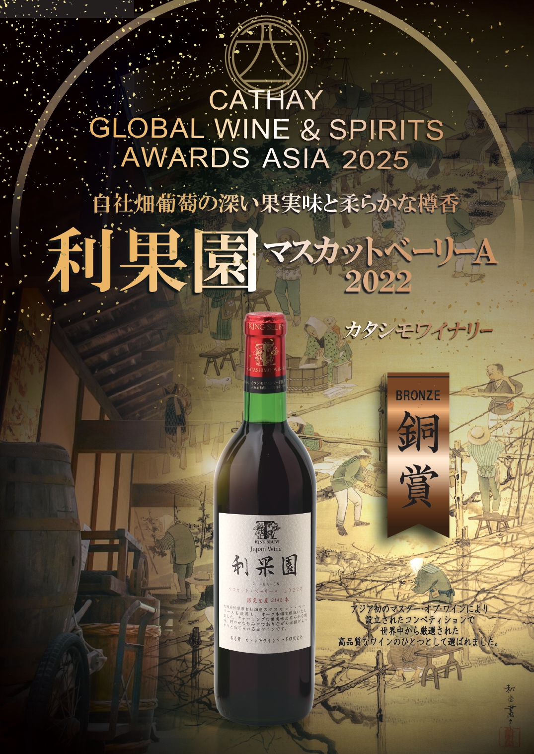 Global Wine & Spirits Awards Asia 2025にて金のたこシャン2022と利果園マスカット・ベーリーA2022が銅賞を受賞